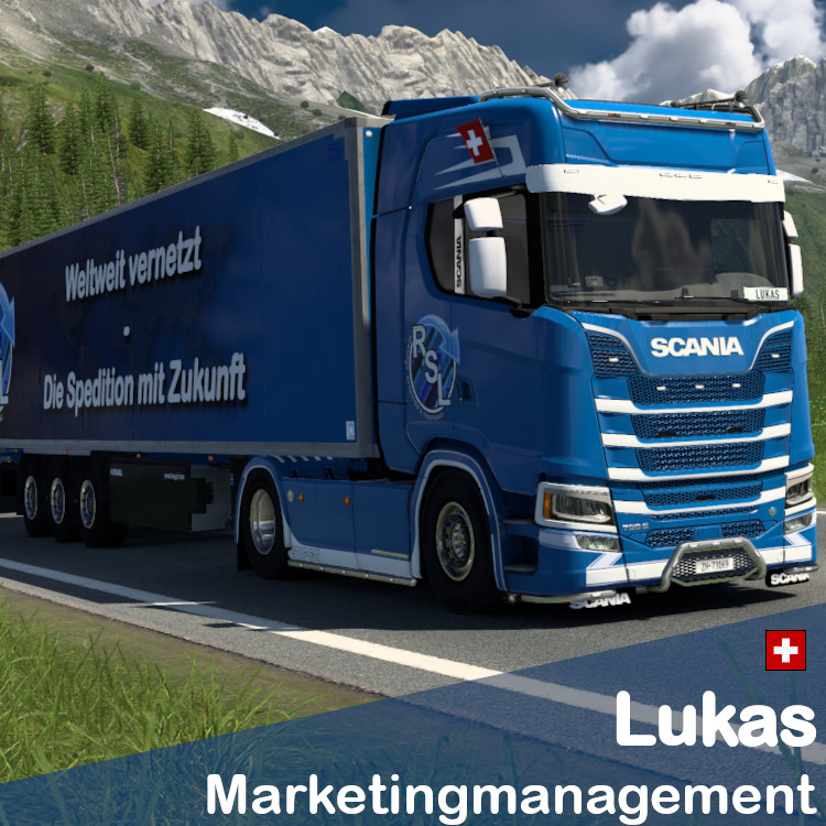 Gründer der Spedition, zuständig für Personaleinstellung, Auszubildende, Mediengestaltung, Buchhaltung und Konvoi-/Eventplanung. Gewinner "Bild des Monats" Dezember 2023 Gewinner "Bild des Monats" Juli 2024 Gewinner "Bild des Monats" Juni 2025 Gewinner "Bild des Monats" Januar 2026
